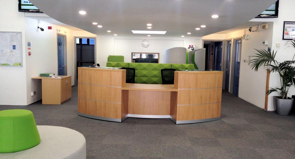 The reception refurbishment within County Hall, Aylesbury included furniture from Ocee Design ltd, Clarke Rendall, Frovi Design, Orangebox and Fusion 10.